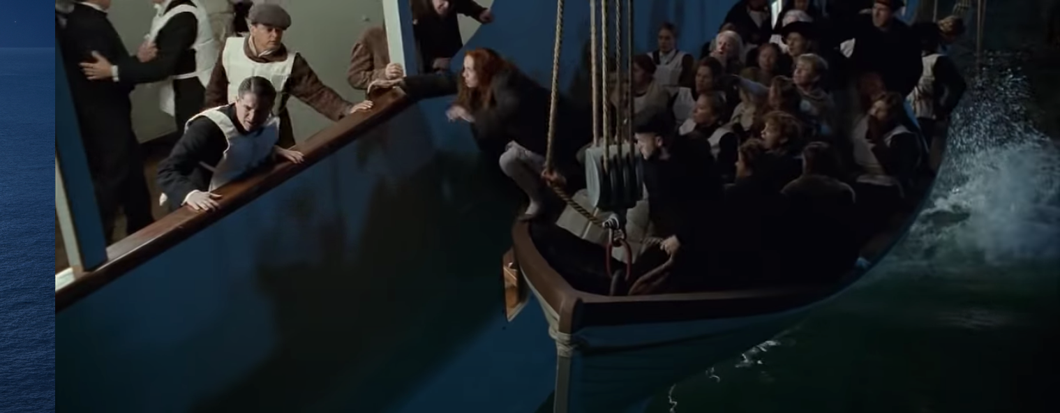 Let’s look at the scene in Titanic (1997) when Rose is briefly in a lifeboat. Here’s what happens: